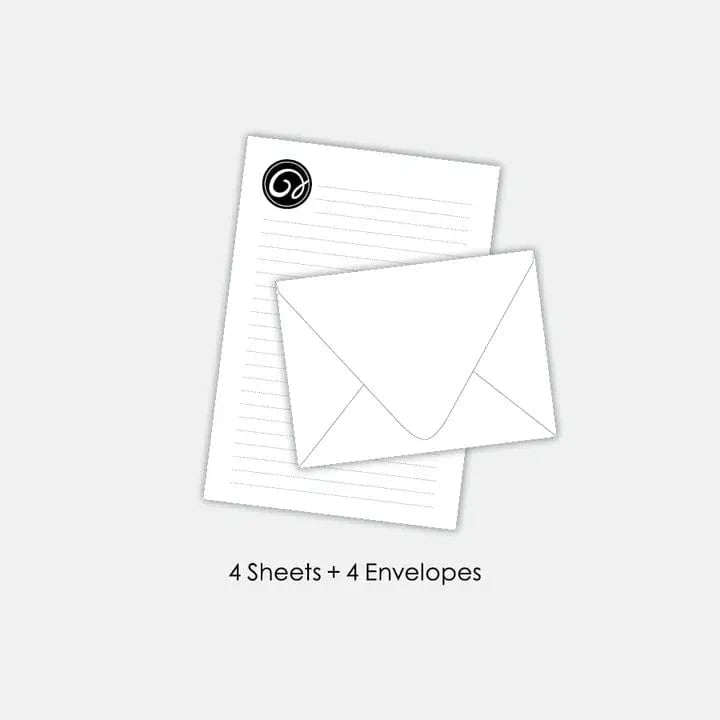 Four 4.5 x 6.25 lined sheets of stationery and four complimentary A-6 envelopes. The candy cane artwork was originally illustrated, carved, colored and stamped by hand, and then electronically generated. The stationery is printed on 70 lb classic white paper stock and detailed with petite wavy lines for writing.