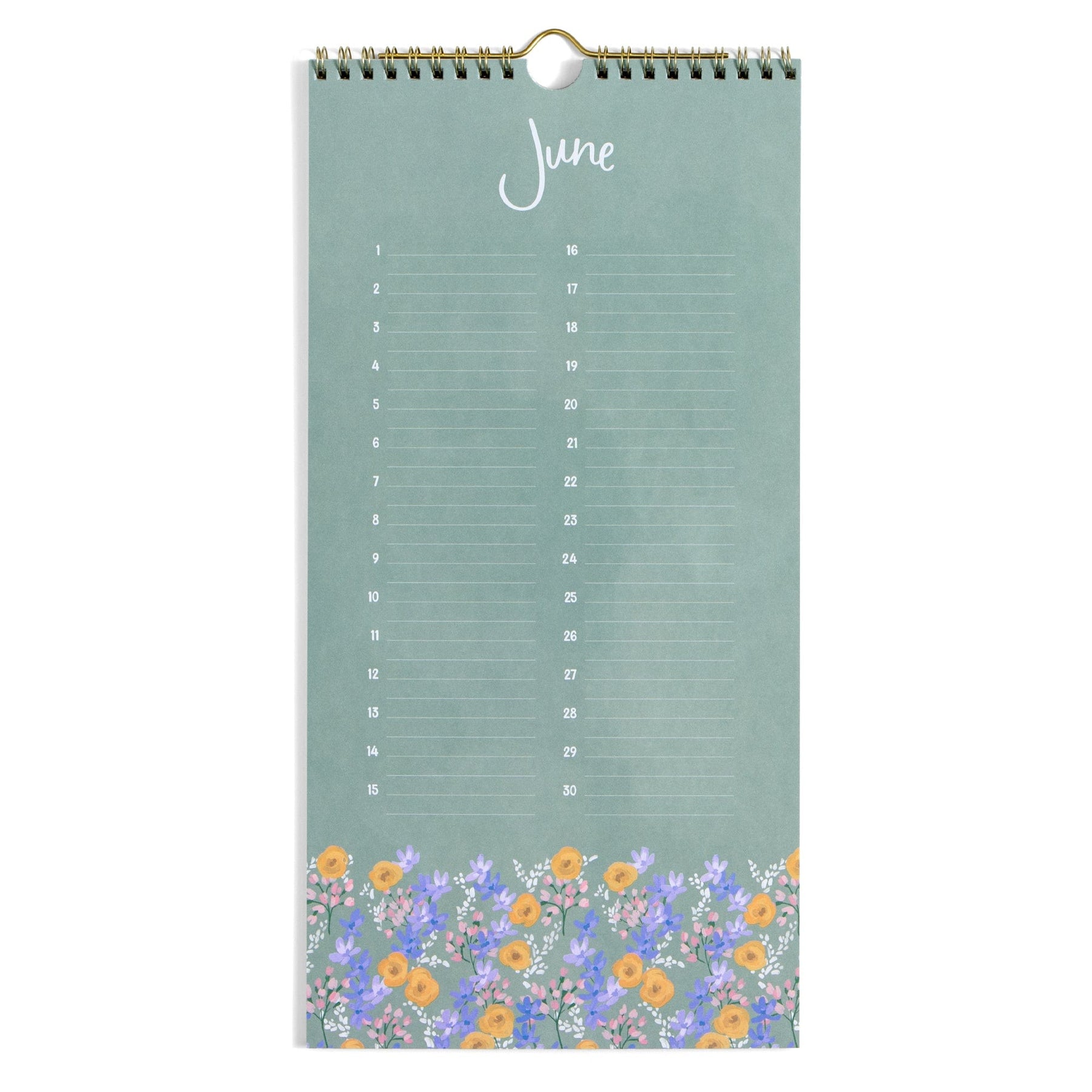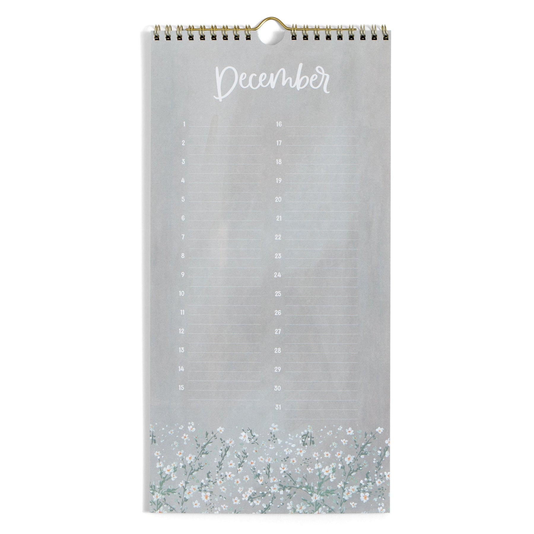 Never miss a special occasion again with the Celebrations by the Month Undated Spiral Wall Calendar. Designed to track birthdays, anniversaries, and other important dates year after year, this perpetual calendar blends function with beauty. Each month features hand-painted florals in a soft, seasonal color palette, bringing a touch of nature to your home or office. With its undated format, you can use it indefinitely—just fill in once and reference it for years to come. A thoughtful and practical gift for planners, organizers, and anyone who loves to celebrate life’s milestones.