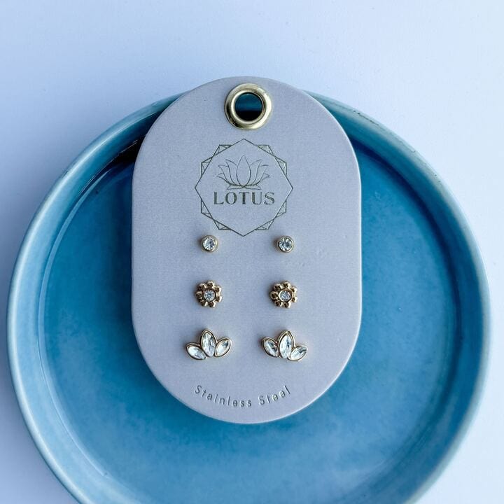 Lotus Jewelry Studio Fashion Silver Plated Modern Earring Trio - Flower