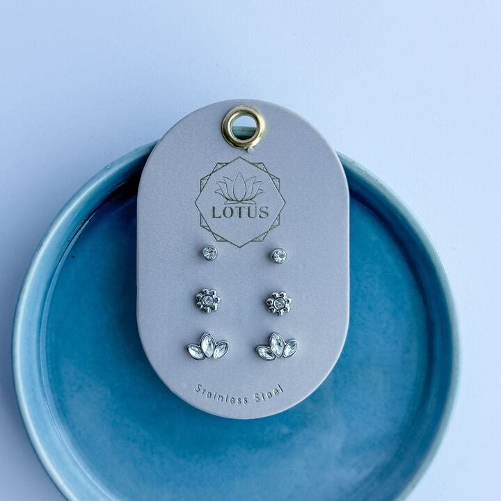 Lotus Jewelry Studio Fashion Silver Plated Modern Earring Trio - Flower