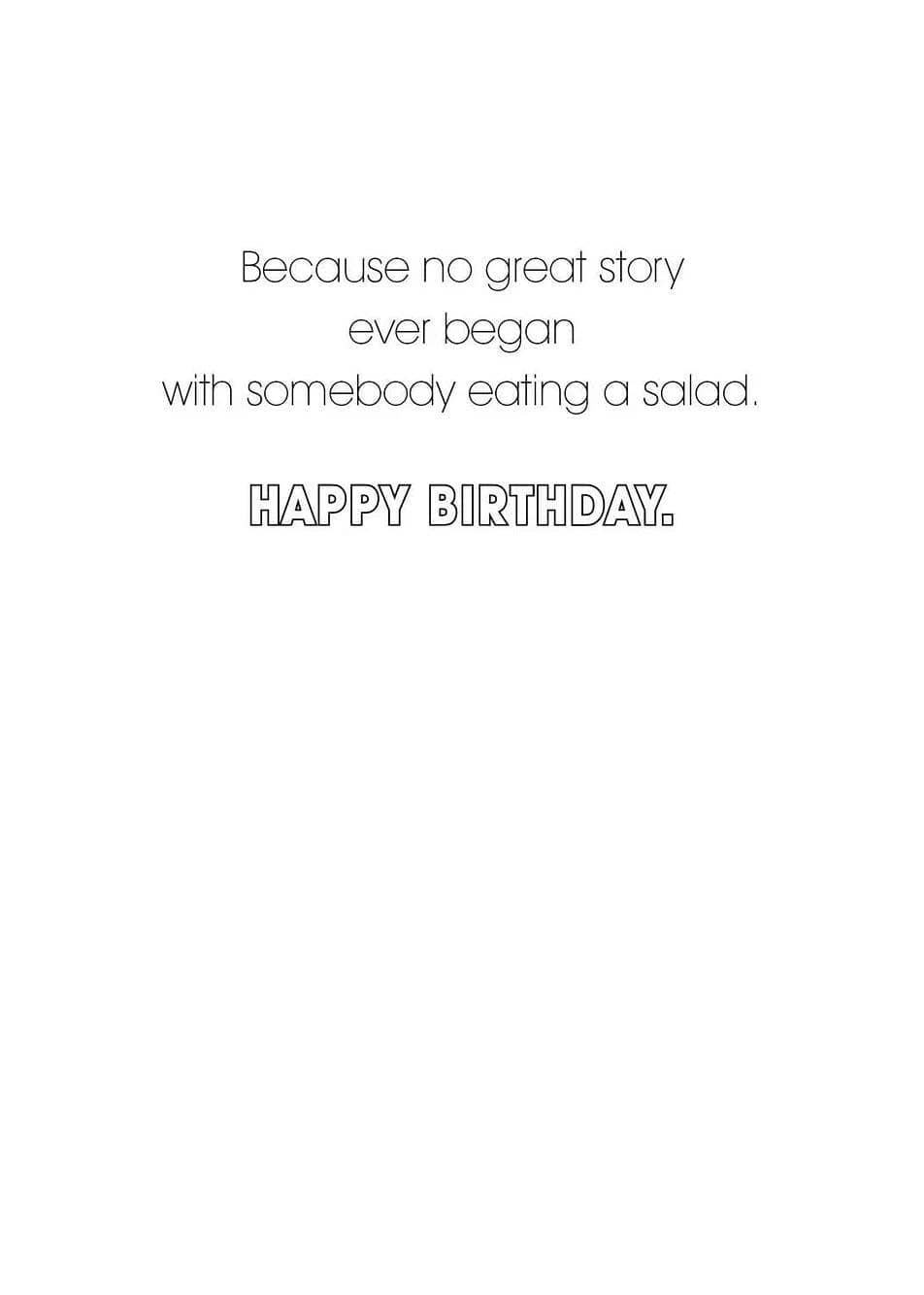 Inside: Because no great story ever began with somebody eating a salad. HAPPY BIRTHDAY.