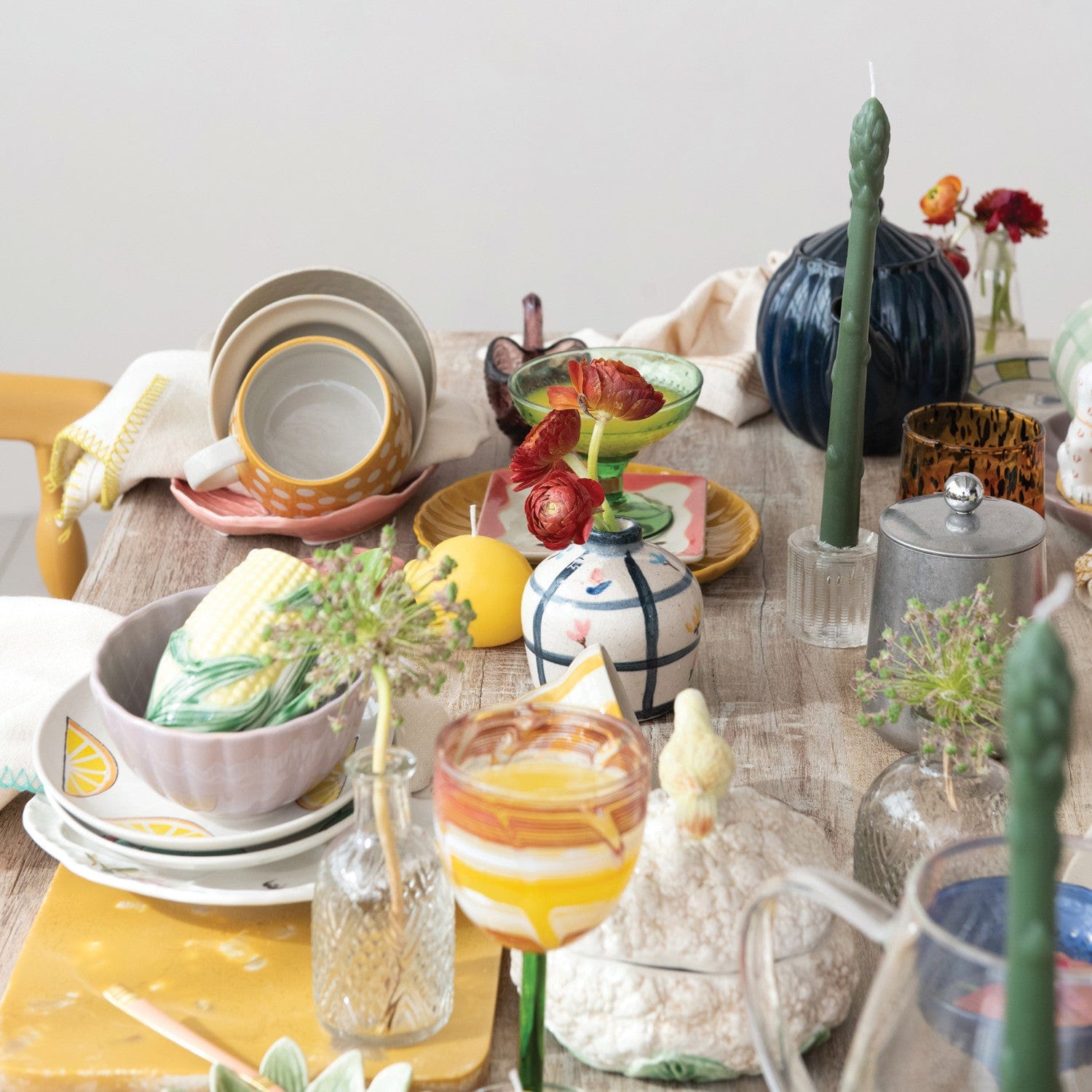 3-1/2" Round x 3-3/4"H Hand-Painted Terra-cotta Vase w/ Flowers & Grid Pattern, Crackle Glaze, Multi Color (Each One Will Vary)