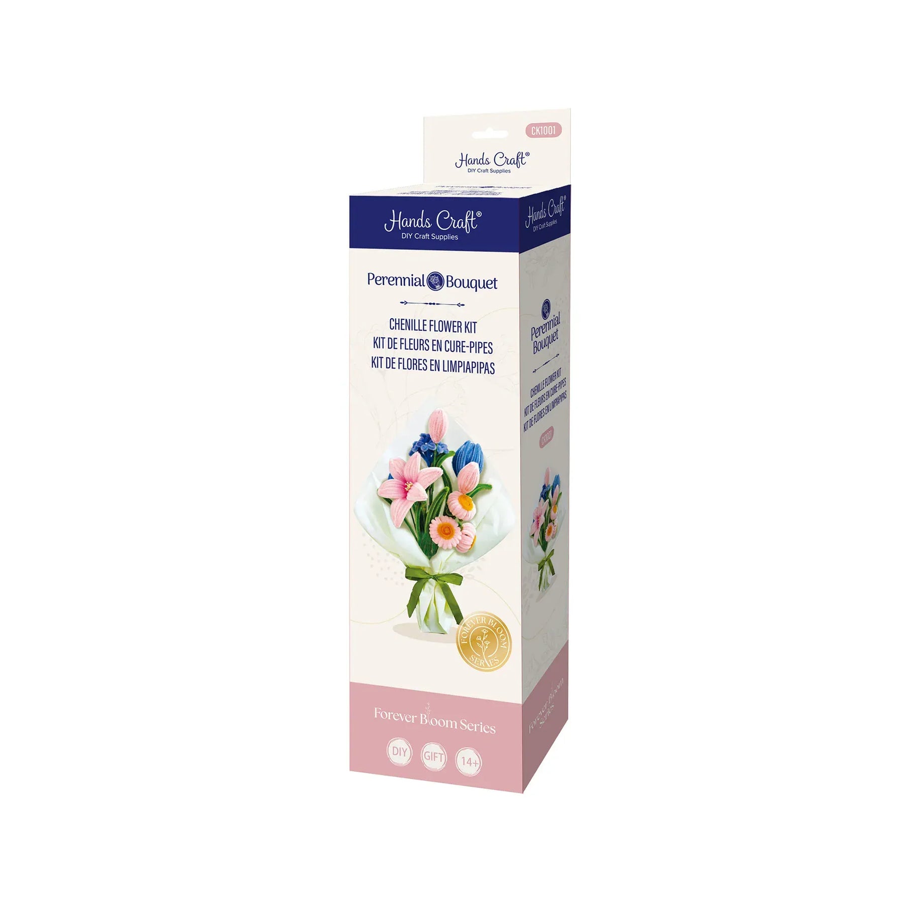 Soft, whimsical, and creatively calming - this DIY kit includes everything you need to twist, shape, and craft a stunning arrangement of pink and blue chenille blooms.