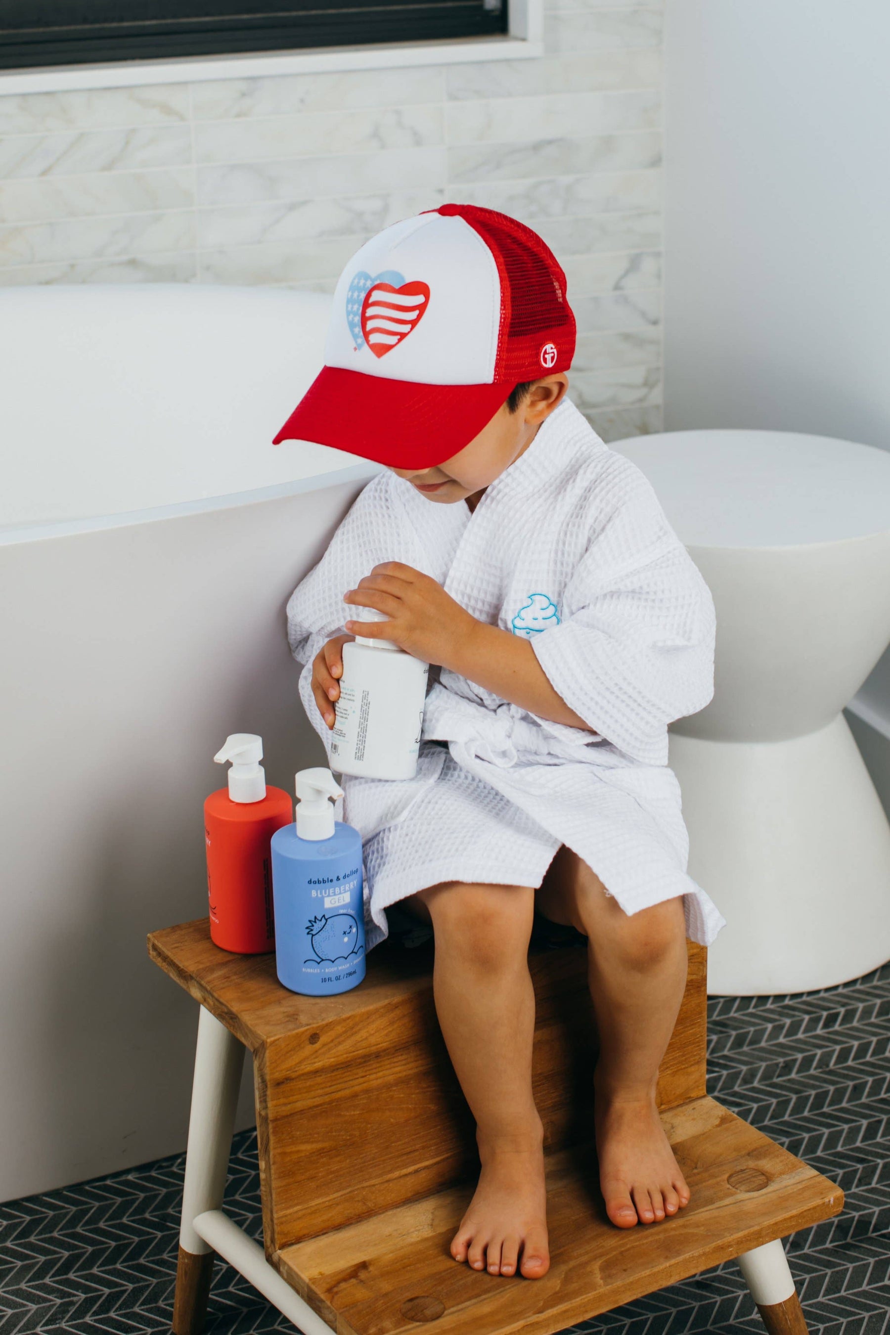 Blueberry 3-in-1 is clear, rich, dye-free, and created with natural-origin, fully disclosed aromas. It is dermatologist-tested, ultra-mild, Certified Tear-Free, and Leaping Bunny Certified Cruelty-Free. It can be used as a bubble bath, body wash, or shampoo.