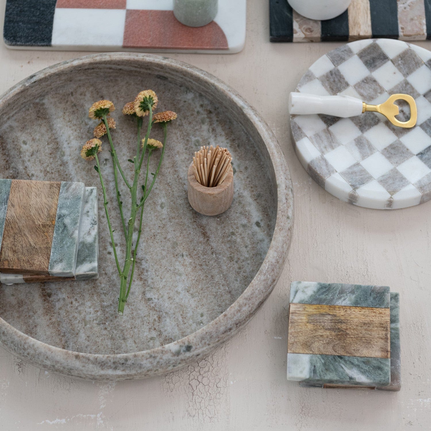 Stainless Steel & Marble Bottle Opener, Gold Finish & White