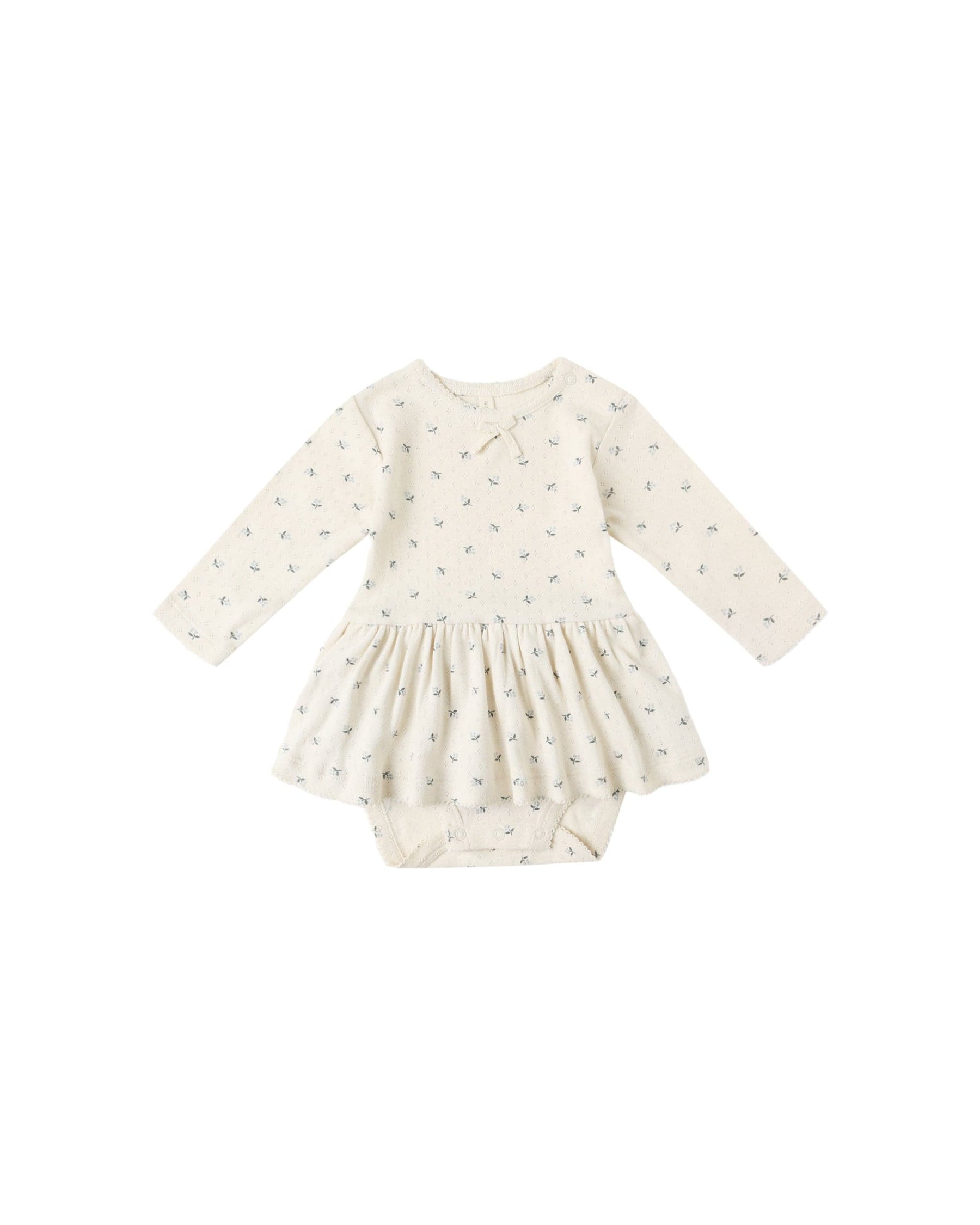 Pointelle Skirted Bodysuit - Blue Ditsy