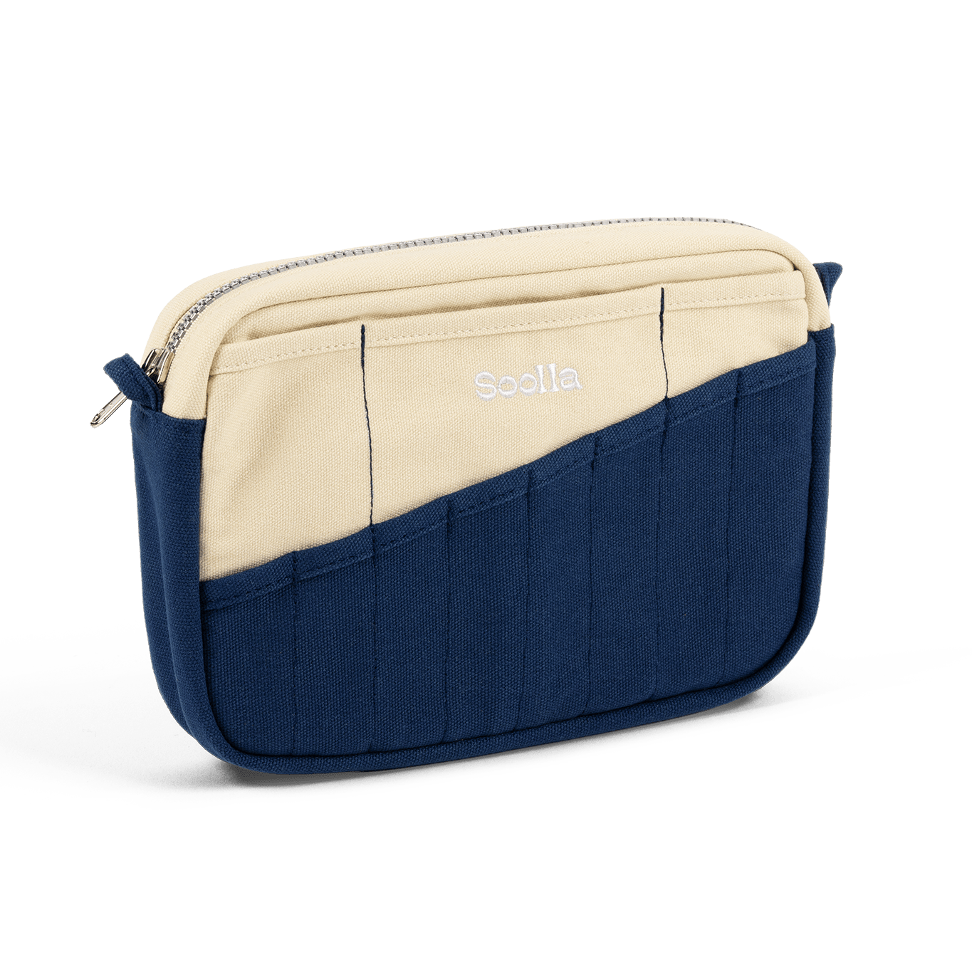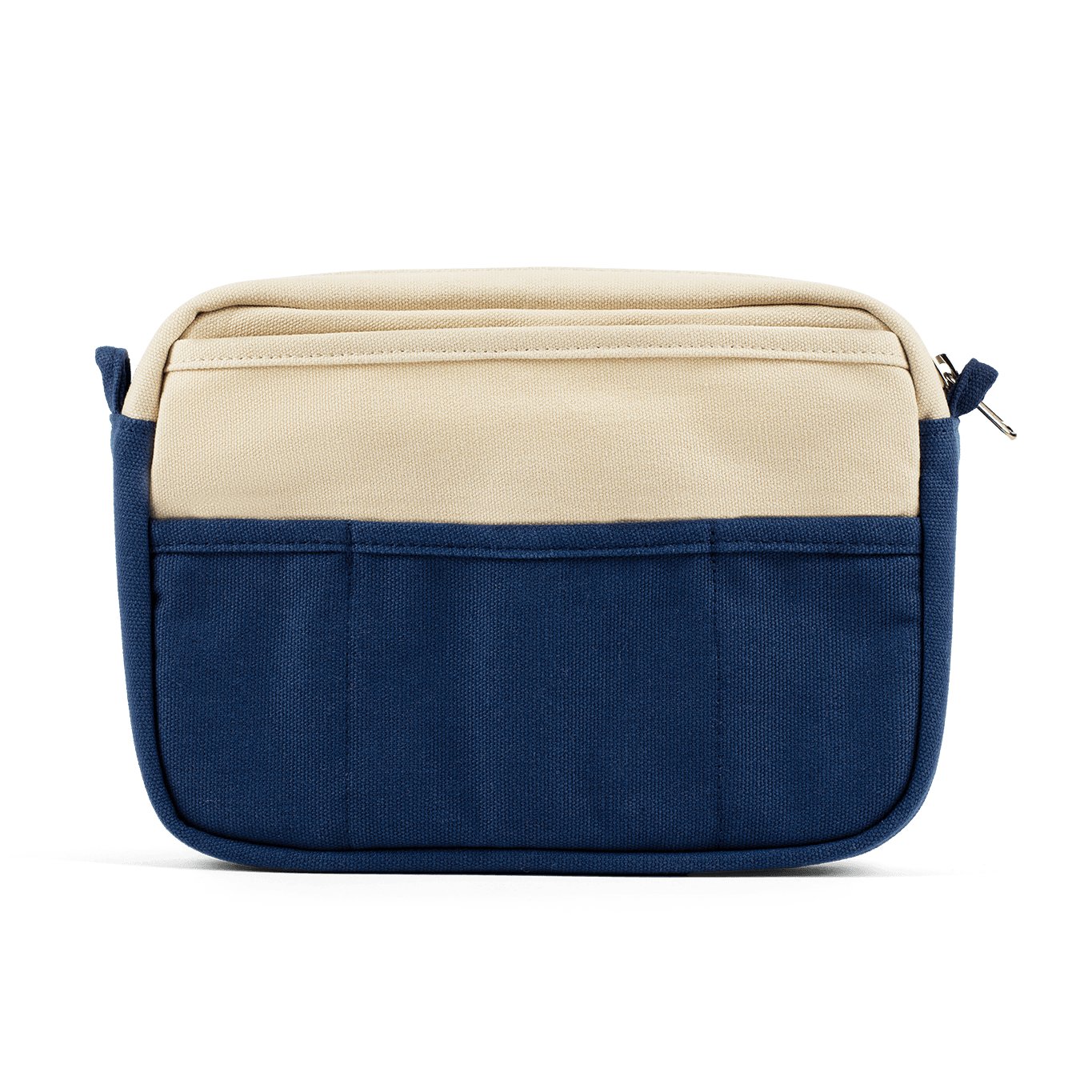 A compact nautical-inspired carry-all for artists, makers, and stationery lovers who appreciate a little order in their chaos. Structured enough to hold its form, soft enough to fit anywhere, and fully machine-washable for the days that get a little messy — your tools, pens, and creative essentials stay safe, visible, and ready wherever you go. Inside, 20 pockets make space for art supplies, stationery essentials, and an A5 notebook, all secured by a smooth YKK zipper. Sized to fit within larger bags or carry as a standalone stationery pouch, it’s organization that moves with you.