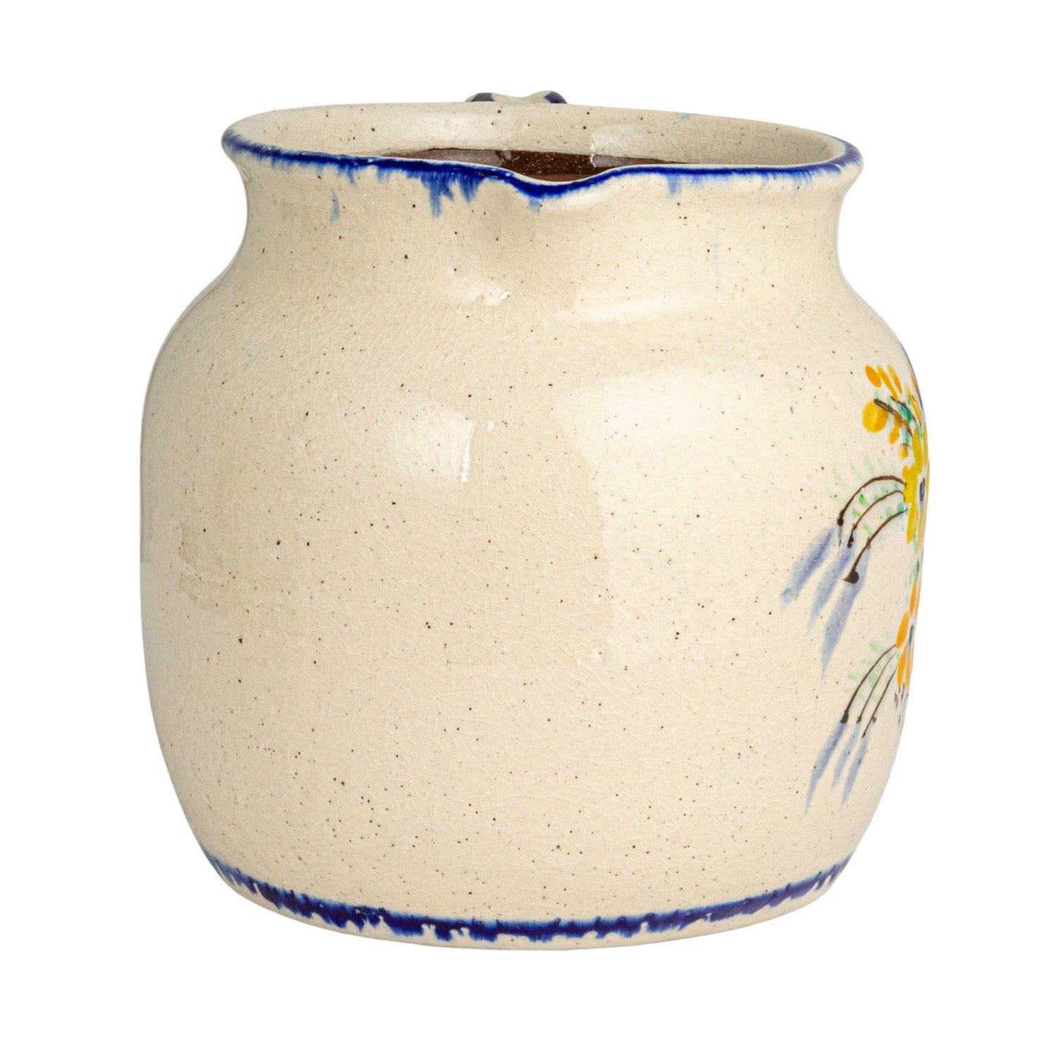 This decorative terra-cotta pitcher features a charming handle and floral design, making it a unique accent piece for your home. Each pitcher varies slightly, adding a personal touch to your decor. Ideal for displaying fresh or dried flowers, it brings a rustic, natural feel to any room.