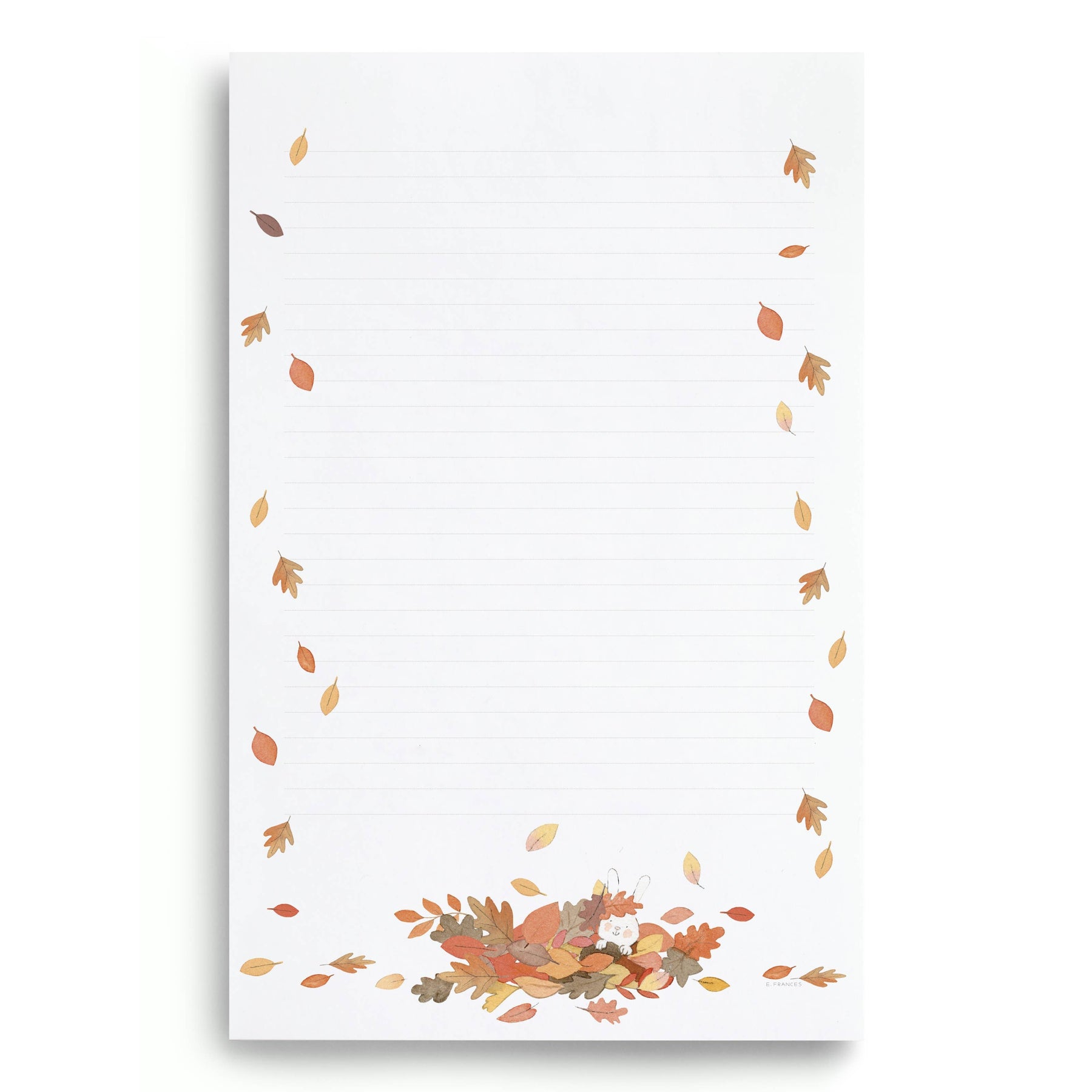 100 GLORIOUS PAGES, 5.5 x 8.5 INCHES, DOUBLE THICK CHIPBOARD We're partial to chunky, substantial notepads. We want them to last a very long time, and for heaven's sake to never ever feel floppy. We want your pen to have a racy affair with your paper everyday. We want list-making, doodling, and note-taking to feel good. Made in the USA. Perfect for jotting down your fall to-dos and grocery lists. Featuring beautiful autumn leaf designs, this notepad is great for fall stationery, seasonal planning, and cozy autumn vibes.