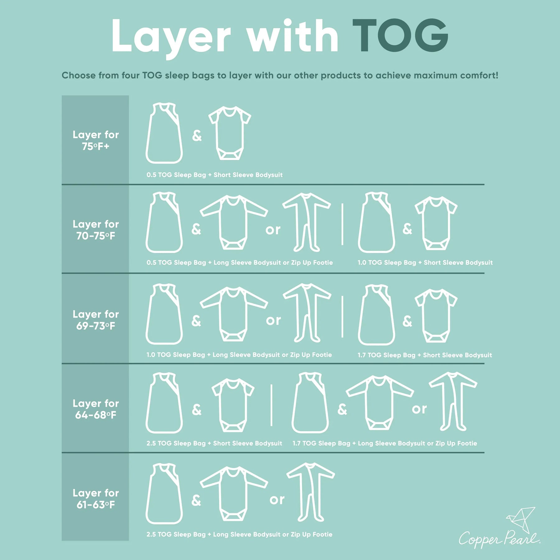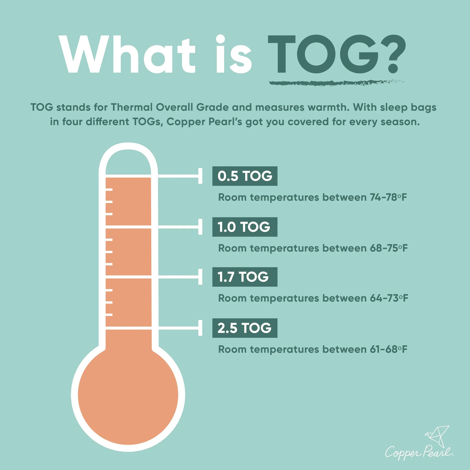 2.5 Thermal Overall Grade (TOG) rating ideal for room temperatures between 61-68 degrees F