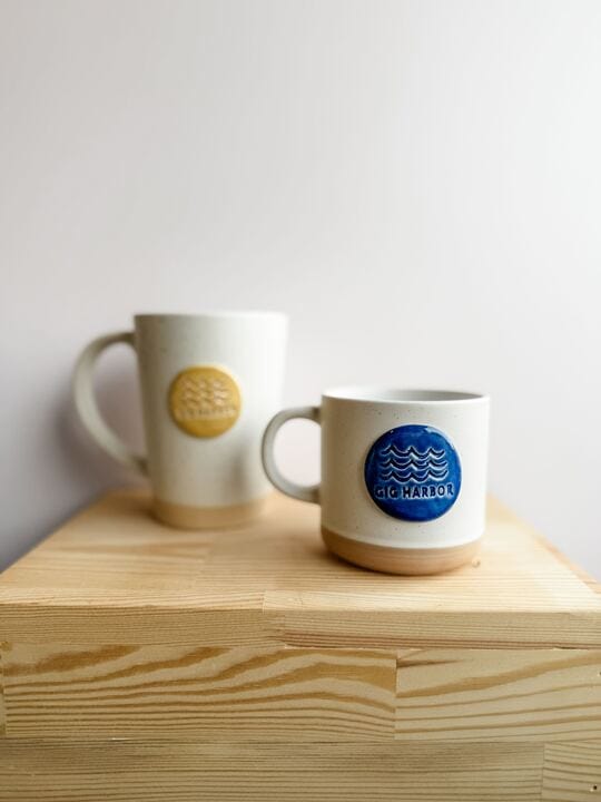 Show off your Gig Harbor pride with this 10 oz cabin style ceramic mug, featuring a hand-stamped medallion with Gig Harbor and a classic wave pattern. Perfectly sized for coffee, tea, or cocoa, this handcrafted stoneware mug brings a touch of the Pacific Northwest to your daily routine.