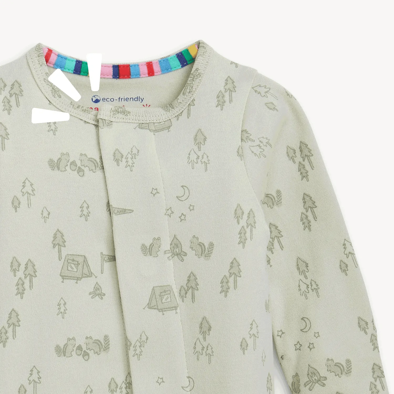• Magnetic closures: magnets line the seam from the neck to upper thigh for sizes up to 0-3m & from neck to crotch for sizes 3-6m and up.