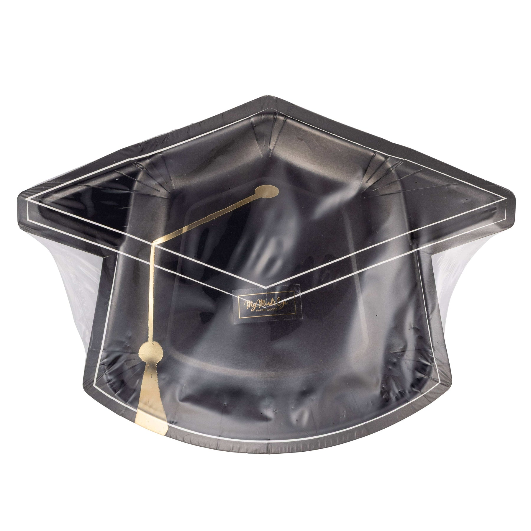 • Black Graduation Cap paper plates in black with gold foil detailing
