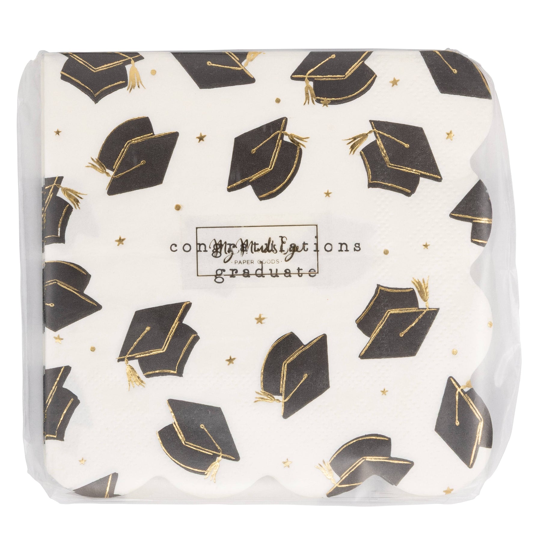 Celebrate graduation season with these festive Grad Hat Scatter Napkins! Perfect for your graduation party, these charming napkins feature a playful pattern of scattered grad hats. Ideal for adding a fun, themed touch to your celebration tables, these cocktail-sized napkins are a must-have for any academic milestone event.