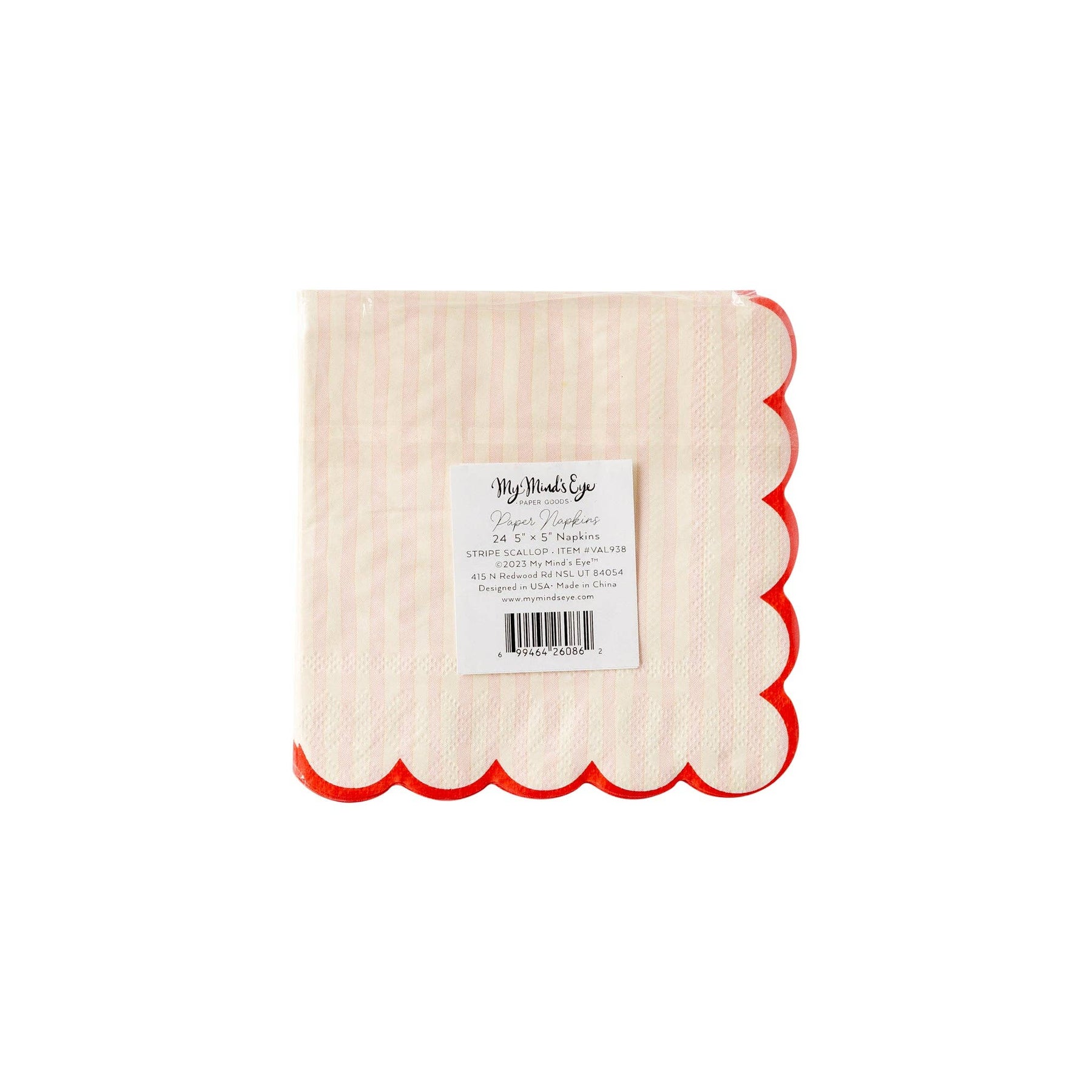 Pink Stripe Scallop Cocktail Napkin