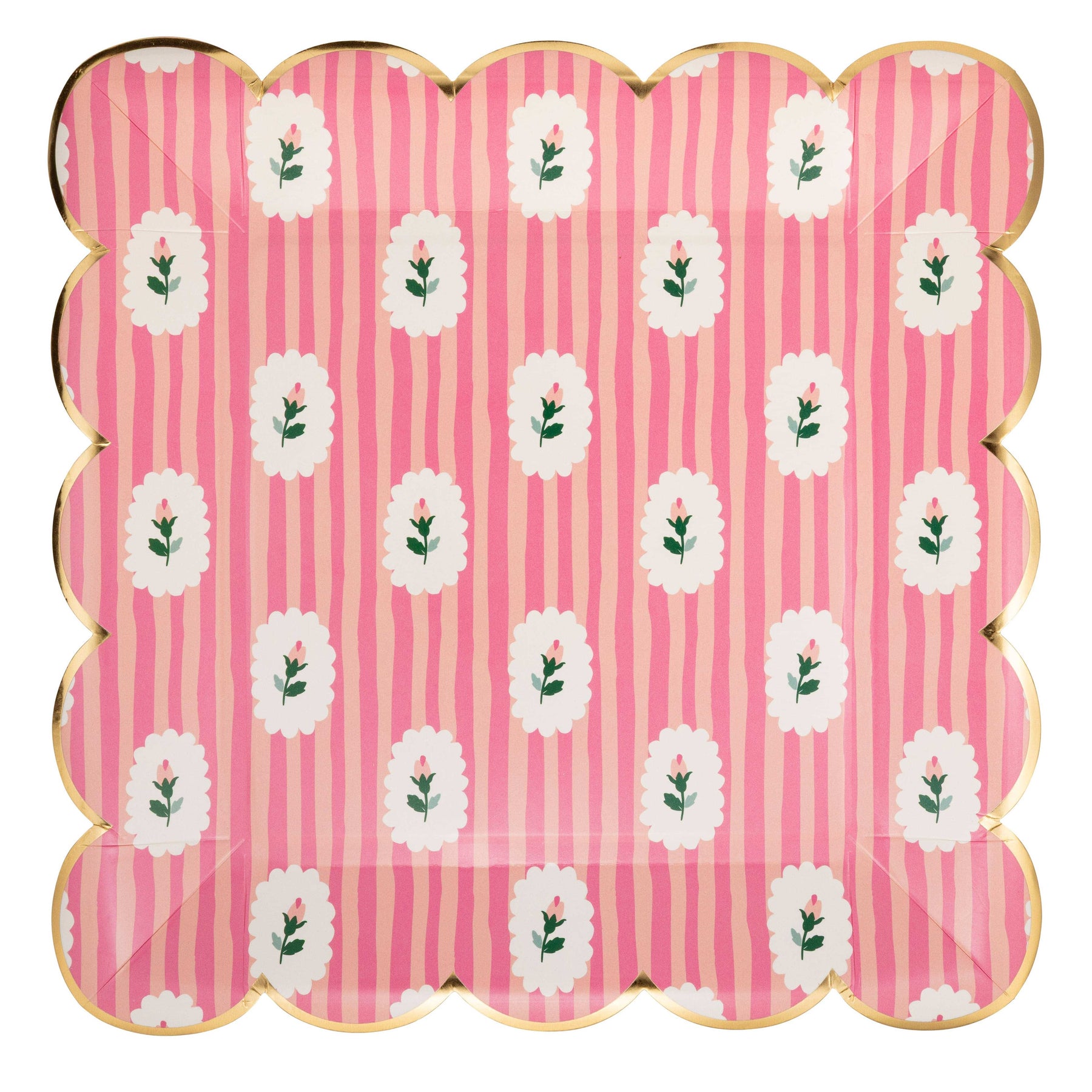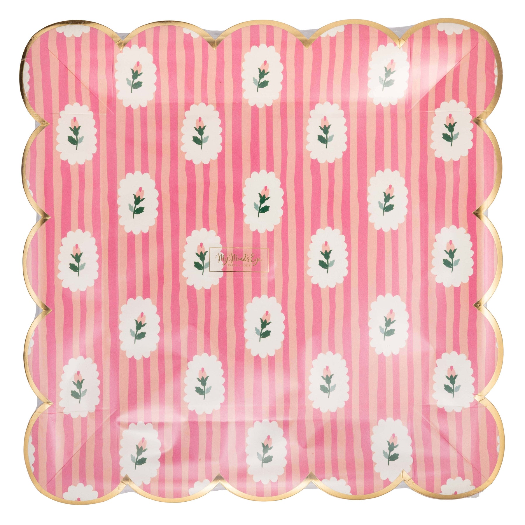 Celebrate spring gatherings with this charming 9" striped floral plate! Perfect for Mother's Day brunches and festive spring entertaining, this beauty combines delicate florals with crisp stripes for a fresh, coordinated look.