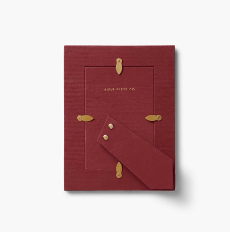 Sized for a 4x6 photo, this paper-wrapped frame features illustrated Delphine stripes, a scalloped photo mat, and a kickstand for display.