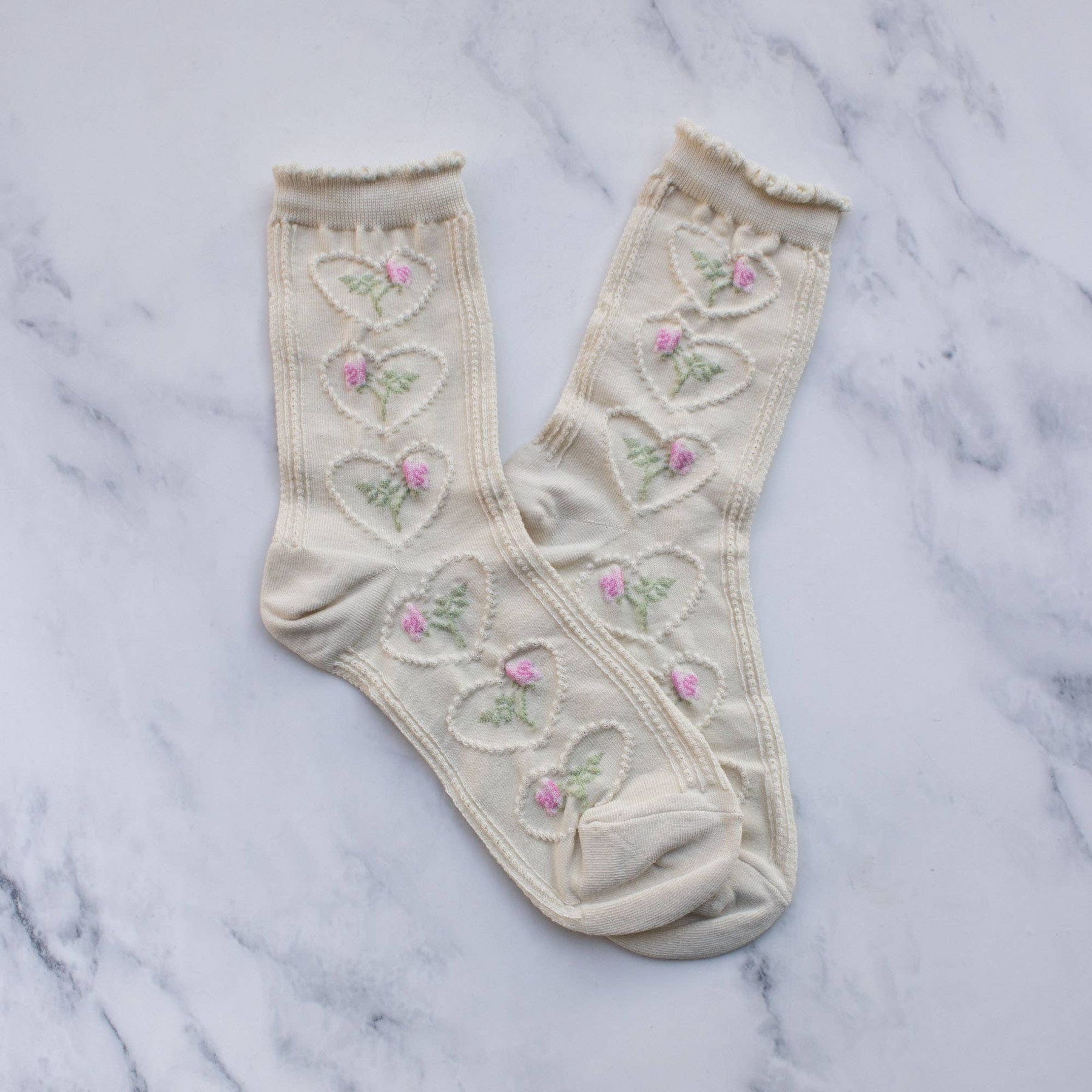 Experience ultimate comfort and style with our Women's Vintage Rose & Heart Casual Socks. The embossed heart shape, adorned colorful roses, adds a touch of charm to any outfit. These socks provide comfort and are perfect for daily wear.