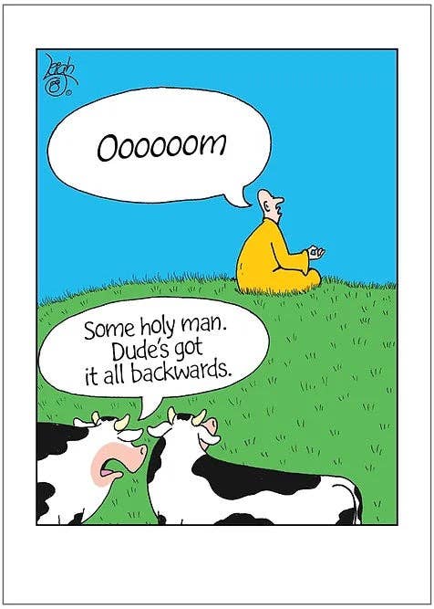 Cover: Oooooom Some holy man. Dude's got it all backwards.