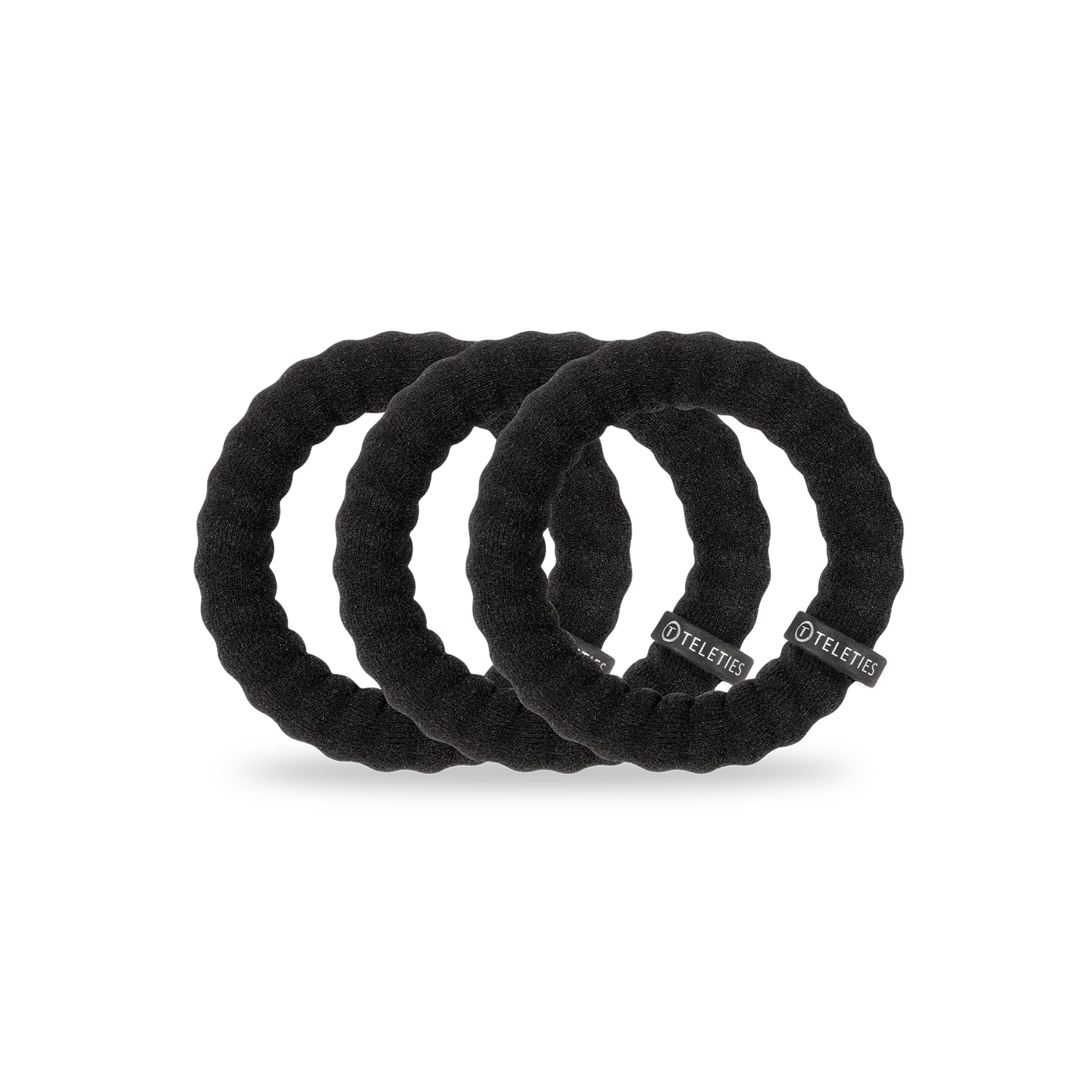 Jet Black Large Nylon Hair Ties are the same game-changing TELETIES coil hair ties, now wrapped in soft nylon for added comfort and curl confidence. These fabric hair ties work great with all hair types, but were made specifically with curly and textured hair in mind.