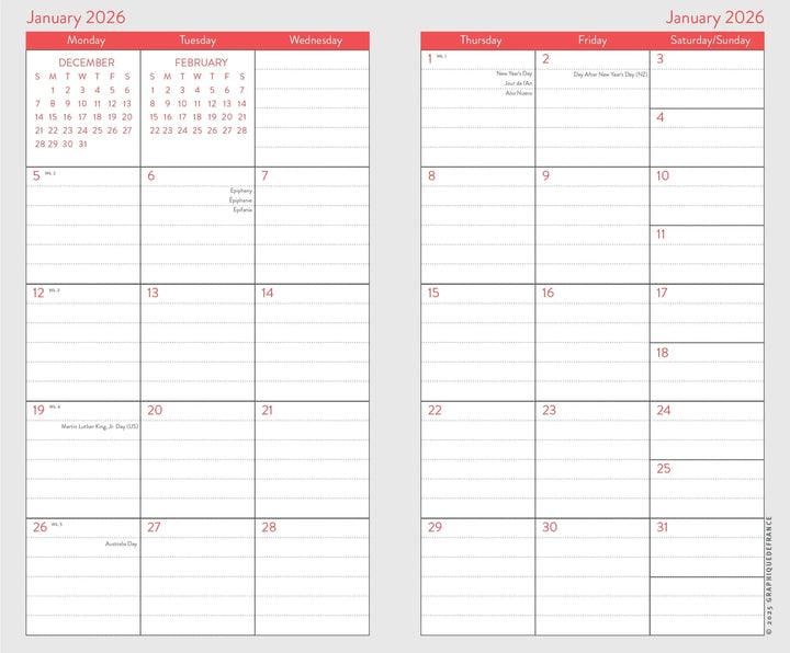 Organize your life with our 2-year pocket planner, you can keep track of deadlines, meetings, appointments, and events within each daily grid. Every month is detailed across two pages followed by two additional pages providing ample space for notes. This 29-month planner contains previous and next month calendars for scheduling reference. The planner features premium quality white paper stock and a clear plastic cover for extra protection.