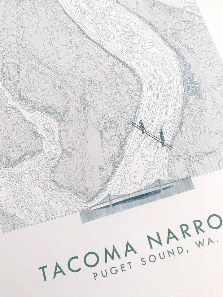 Tacoma NARROWS + Gig Harbor WA Hand Drawn Topo Map ART PRINT