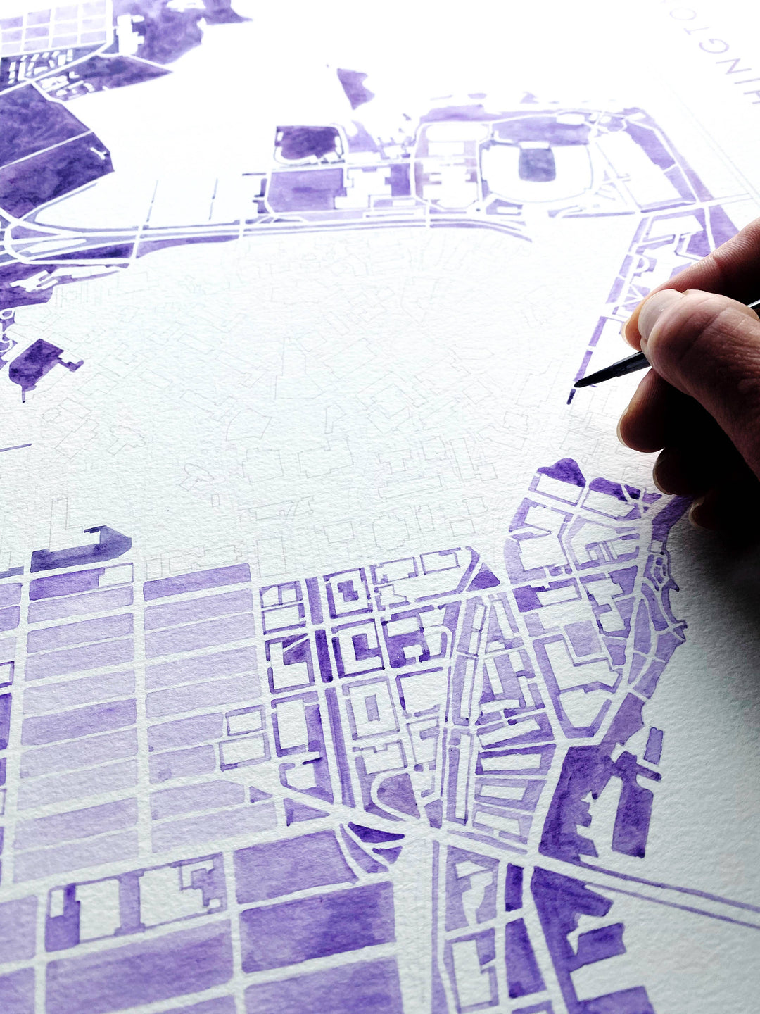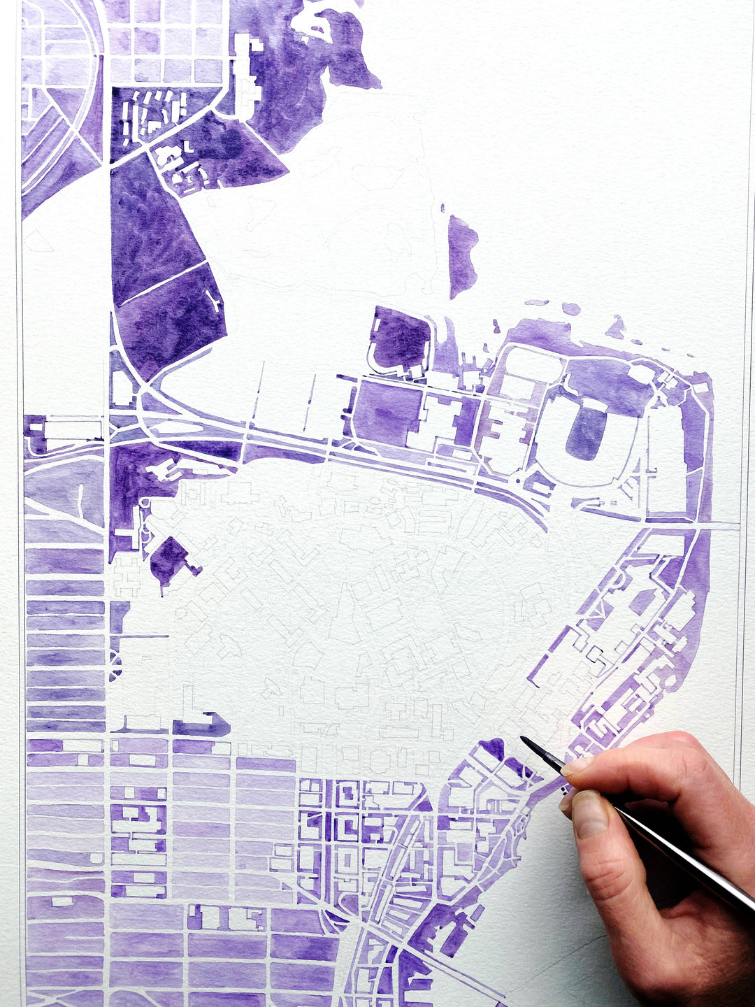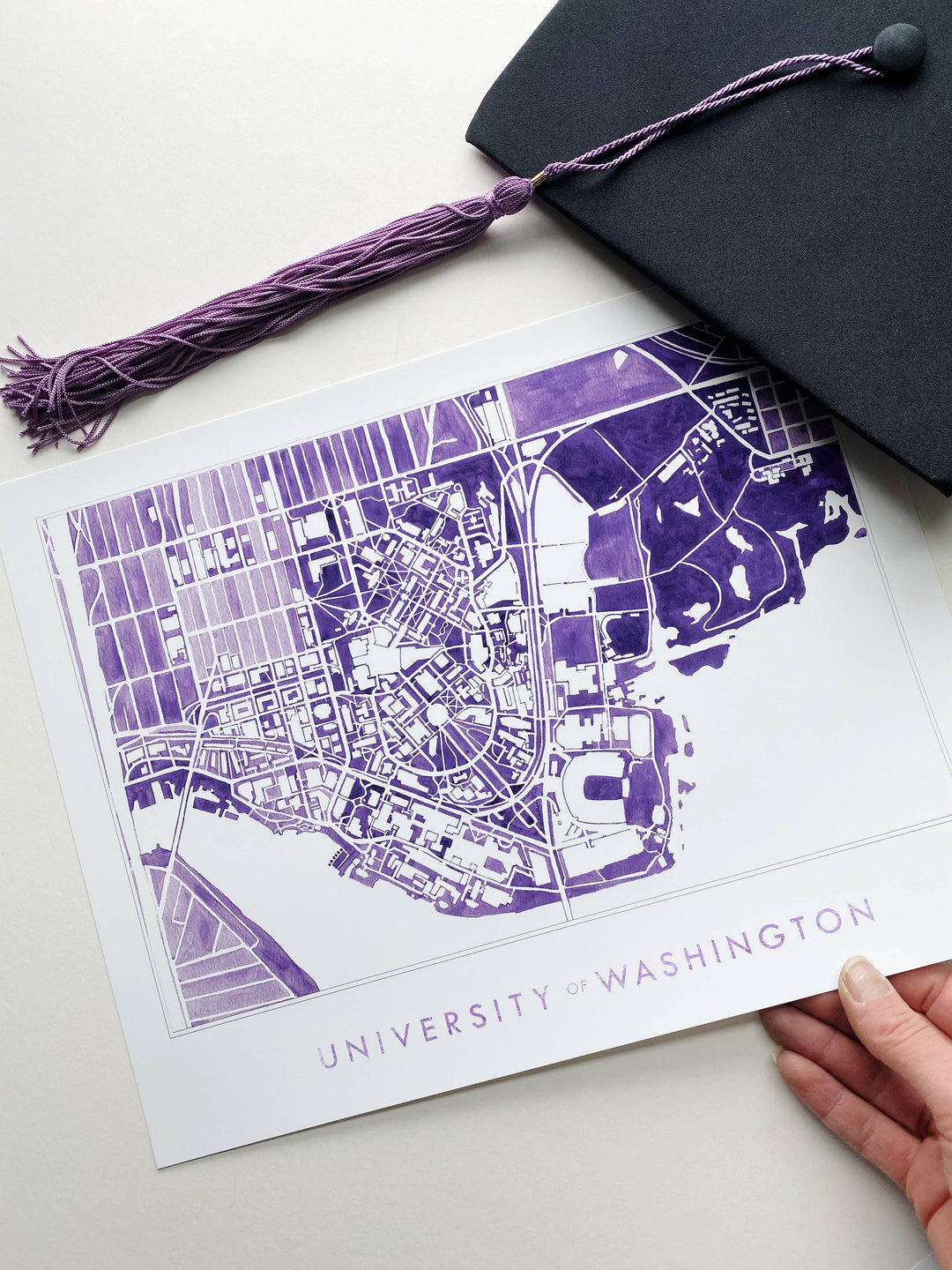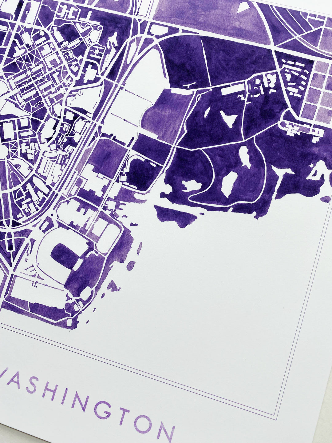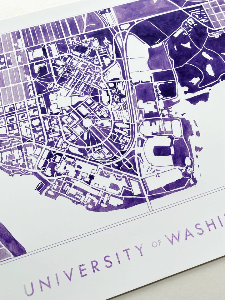 University of Washington Seattle Watercolor Campus Map Art Prints - Show some love for your favorite university and campus! This is a PRINT of an original hand-painted watercolor painting in variegated tones of UW purple.