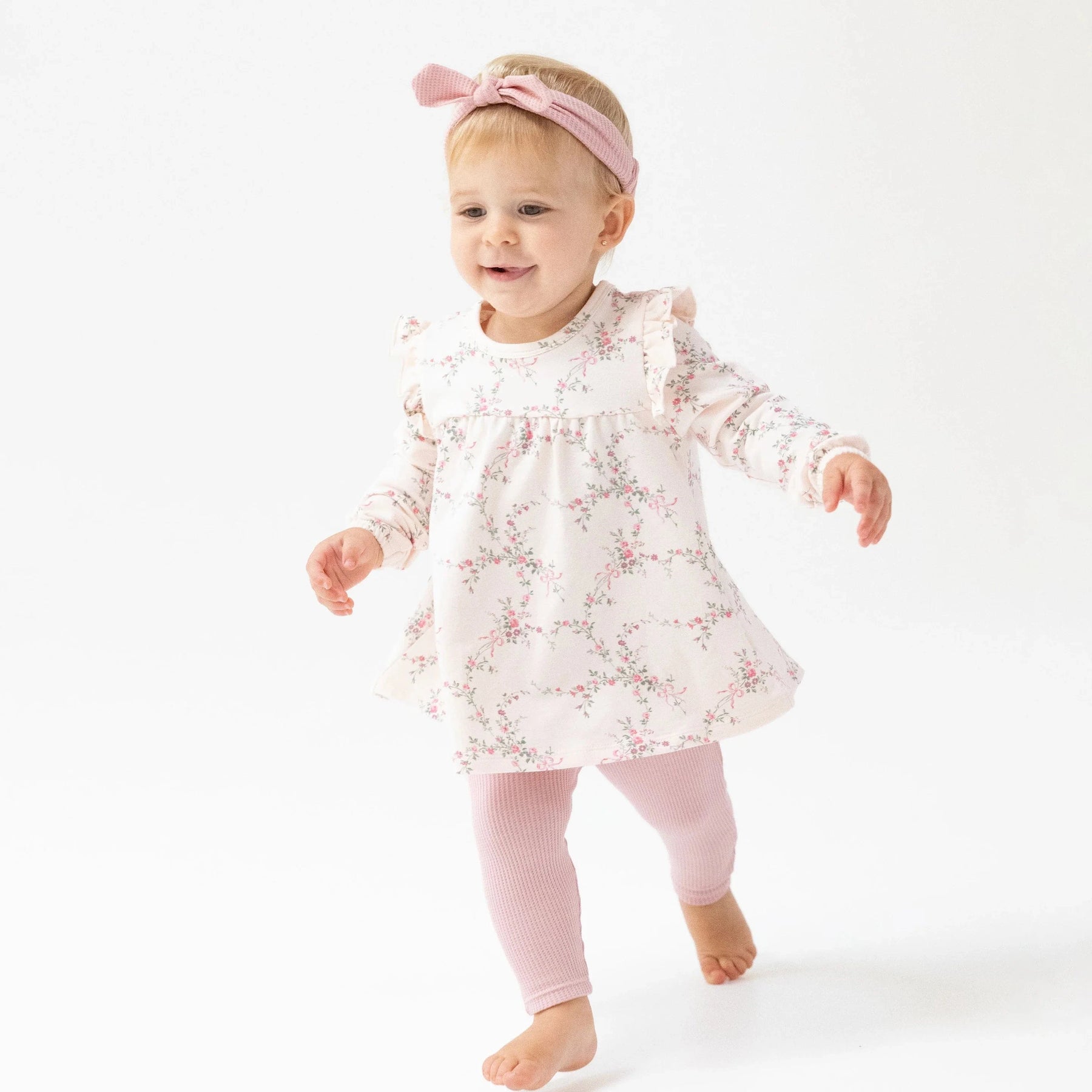 The perfect duo for fall fun! Our Ruffle Top Tunic and Waffle Legging Set combines soft French terry with cozy waffle for an outfit that’s comfy, cute, and totally twirl-worthy. The tunic features sweet shoulder ruffles and a relaxed fit, while the leggings offer stretchy, all-day comfort that moves with your little one.