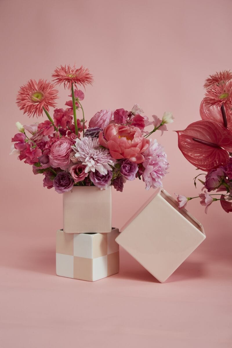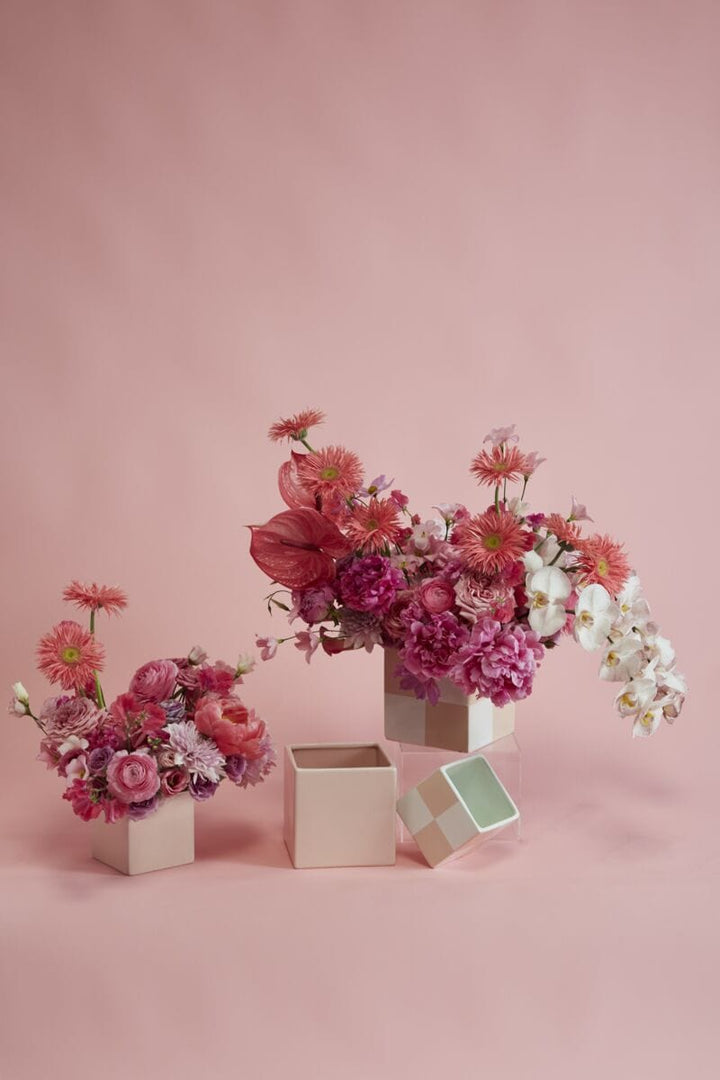 Fresh & trendy with clean lines & soft color, the small dolomite ceramic Blushed Urban Square Pot is lightweight, durable, & a beautiful pop of pale pink. Its square shape allows for ease of transport of floral arrangements or drop-in plants, while the checkerboard pattern makes it an on-trend gift for Valentine's Day, Galentine's, birthdays, or just because.