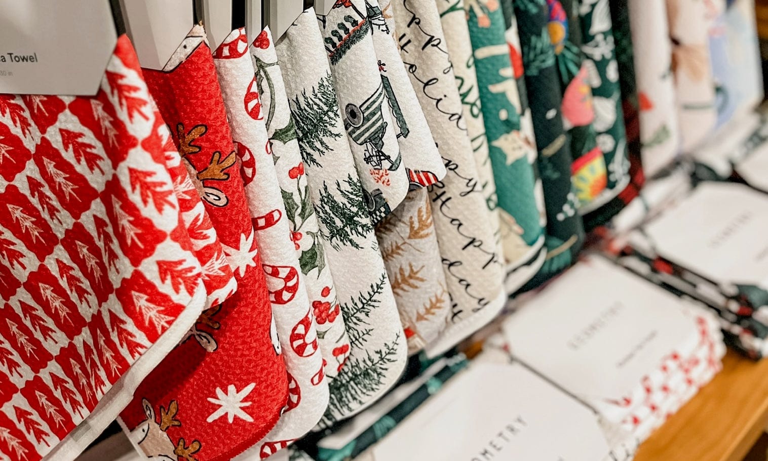 Our #1 selling line of beautiful giftable towels in several sizes and tons of festive patterns.