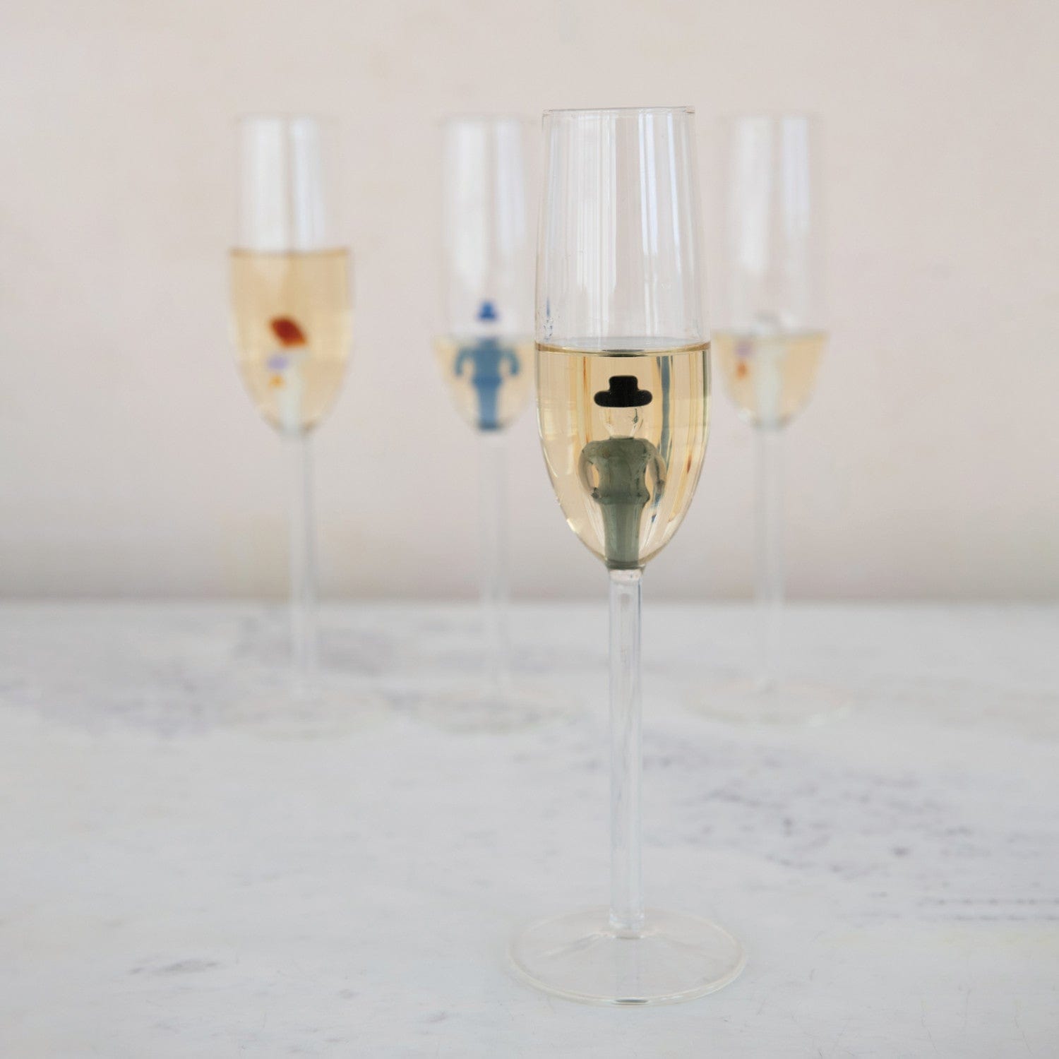 6 oz. Stemmed Champagne Glass w/ Hand-Blown Groom Inside