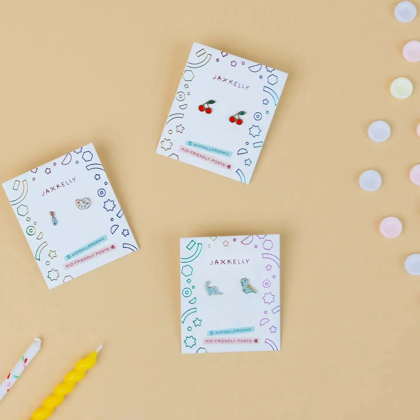 High-quality, hypoallergenic earrings are made for kids with sensitive ears and can be worn 24/7. Designed for kids but cute enough for grown-ups too!